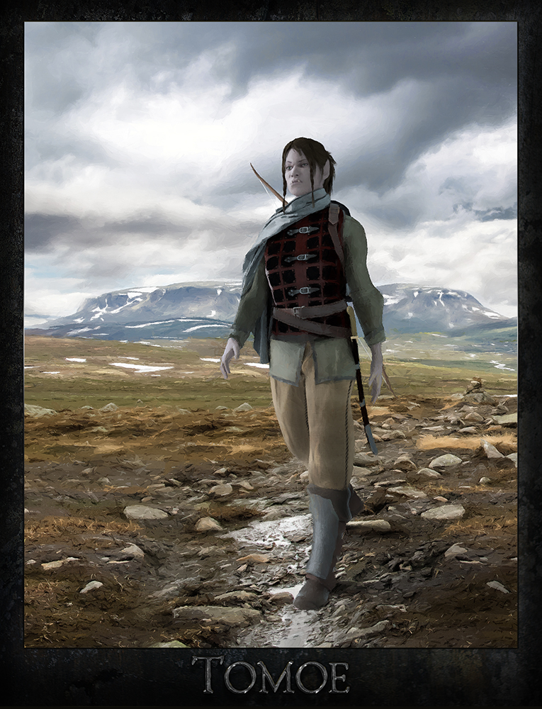 Tomoe est issue d’une famille de guerriers Merosi. Au côté de son épouse, son père mena de nombreuses batailles et fut un commandant reconnu par ses pairs jusqu’à ce qu’il se retire des combats sans raison apparente. Dans le même temps, il envoya quelques-uns de ses fils et fille étudier plutôt que de prendre les armes.